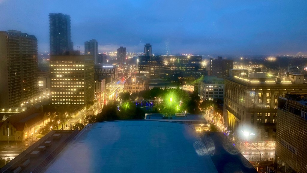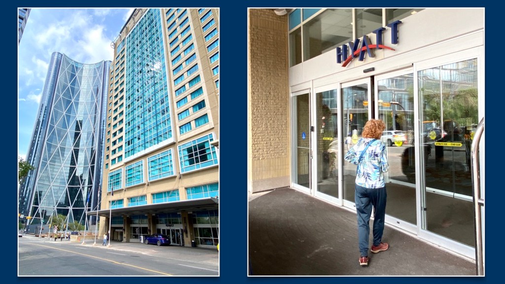 After an uneventful non stop flight we were met by an Odyssey’s rep, and shuttled to hotel (Hyatt Regency). After checking in we were off on a walk along Stephen Avenue in downtown Calgary, and a beer stop 😊🍻