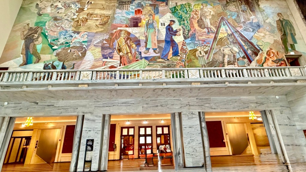 After unpacking we ventured out (in the rain), stopping at a ATM to get some Danish Krone, and then eventually making our way to the magnificent city hall and the expansive plaza