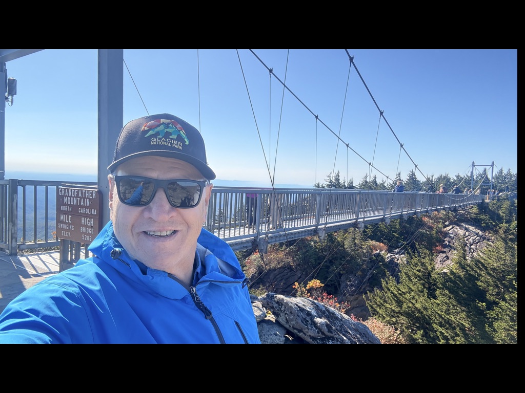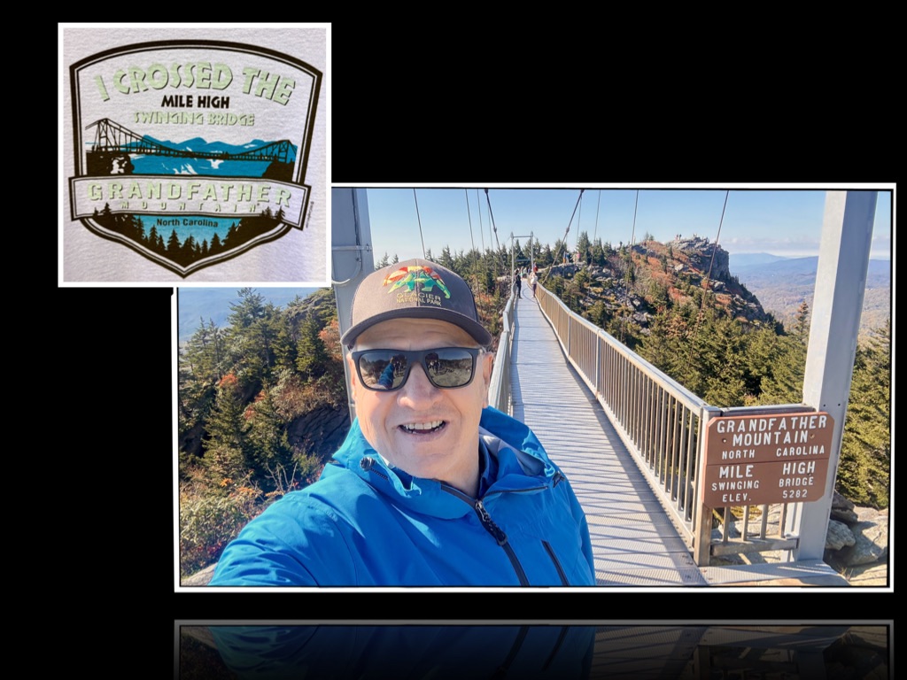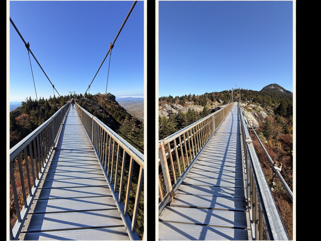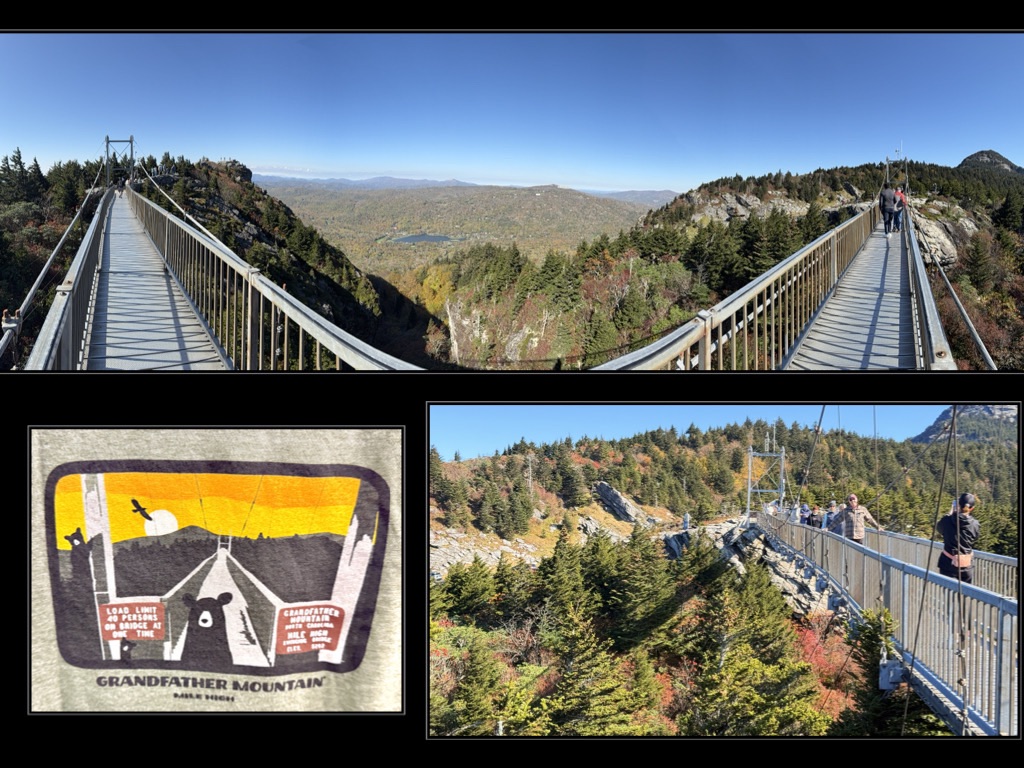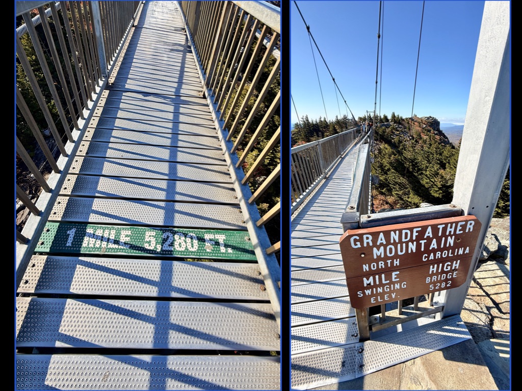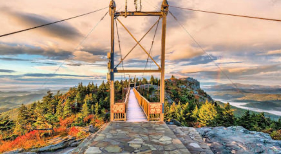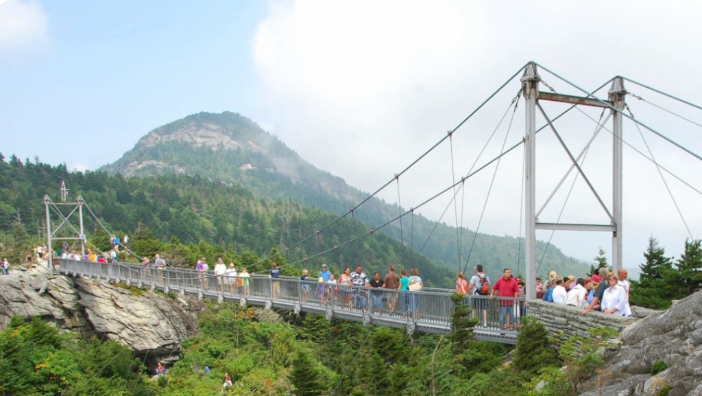 The Mile High Swinging Bridge is a 228-foot suspension footbridge located at Grandfather Mountain in Linville, North Carolina. True to its name, the bridge sits at an elevation of 5,280 feet (one mile) and offers visitors a 360-degree panoramic view of the Blue Ridge Mountains.